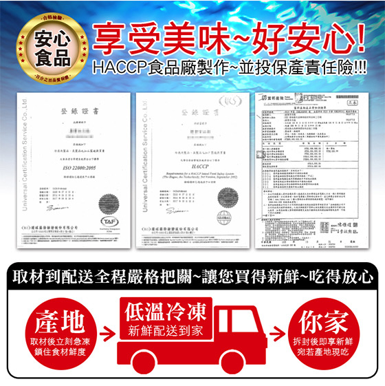 就先新鮮捕撈上來鮮做般軟Q彈牙,咀嚼間盡是大海鮮味! ![]() ![]() ![]() ![]() ![]() 商品規格 名稱:【賀鮮生】超殺Q彈~花枝丸/虱目魚丸 規格:23g±10%/顆(13顆為一包裝) 成分:花枝丸;虱目魚丸 產地:台灣 保存方式:冷凍 保存期限:-18度C以上,一年 食用方式:烤、煮湯、炸 |